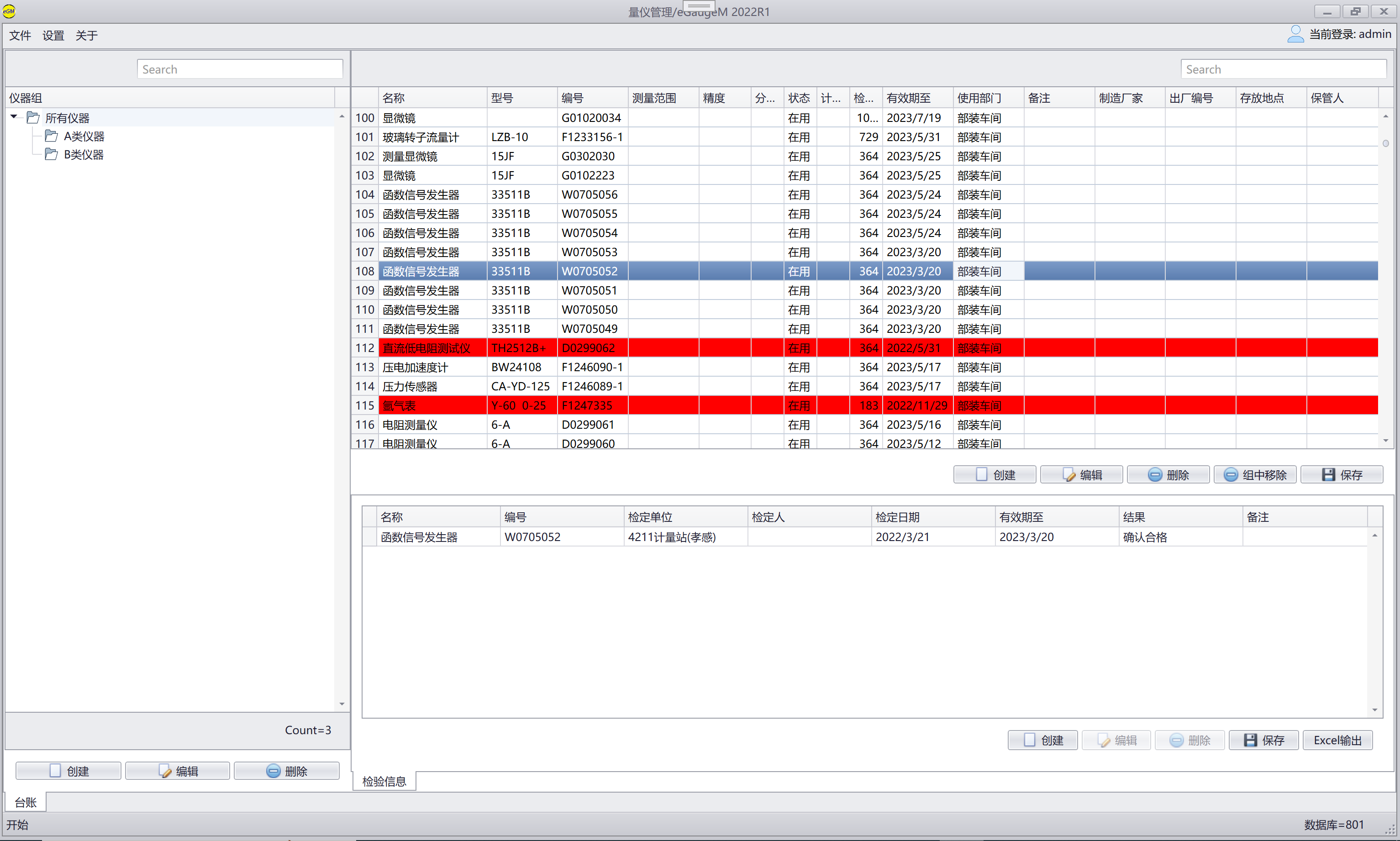 Ø 对量具进行识别“已过期”或者“正常”,过期要30天提醒(可自主配置)