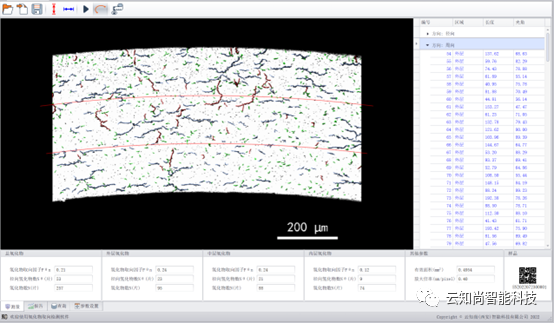 自动统计分类后的有效氢化物线条,并读取其数量,在软件界面显示。同时针对分层可单独统计各层各类氢化物数量。根据统计数据自动计算总体和各层的氢化物取向因子,保留两位小数显示于软件界面中。