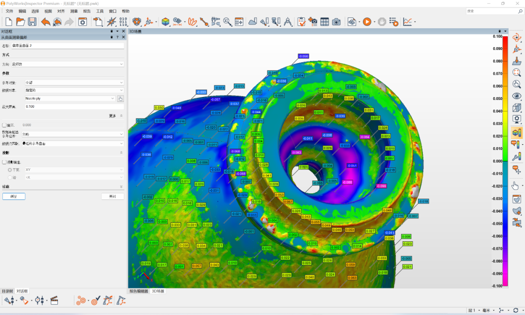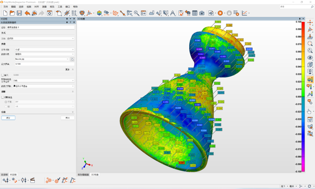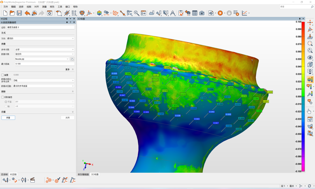 2)按设置的测量点生成偏差值:可以根据数模上标注的测量点位,对拟合后对应的点位进行测量,生成目标点偏差值。