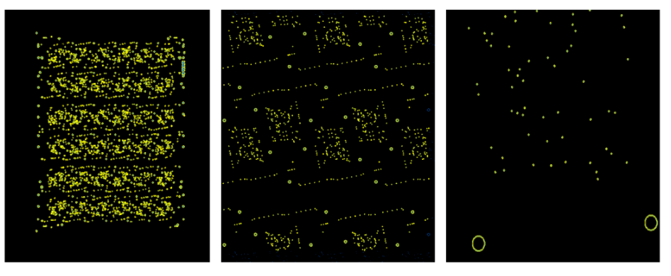 客户是一家激光打孔设备的专业生产厂家,对激光加工有多年的研究和应用经验。客户的激光打孔设备应用成熟的激光器,可以保证所加工的孔的形状,质量完全满足最终用户的要求。要达到好的孔质量,激光加工时必须沿着孔的切线方向进入,加工完成之后沿着切线方向出。客户设备上使用SCANLAB的振镜系统,ACS运动控制器。最终用户提出了一个非常有挑战性的任务,需要在一块电路板上加工60000个孔,这些孔大小尺寸不一,只能给出这些孔分布排列的设计图纸,图纸为.dxf格式,并且要求加工时间不能大于25分钟。而客户目前使用的传统打孔控制软件,加工一块产品需要60~70分钟的时间。