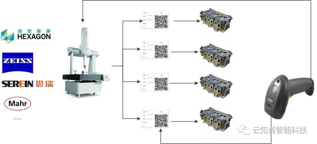 “批量检测” 是在工业生产中经常遇到情况。对于坐标测量机而言,每次检测通常需要操作人员选择测量程序。当需要检测很多种类型的工件时,大量的测量程序的管理会对企业造成不小的困扰。云知尚DMIS-Support软件中的扫码自动测量模块,帮助用户管理测量程序,只需要在工件或者夹具上贴上二维码,测量时扫码自动测量,简化测量程序管理工作,正在许多用户生产测量活动中发挥着重要作用。