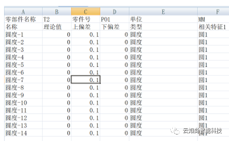 eQV-DMIS也支持导入特征的方式。用户可以先在excel中,建立好相关的信息。在excel中输入零件信息:零件名称,零件序号以及零件单位。尺寸信息:测量尺寸的名称、理论值、上偏差、下偏差、尺寸类型及相关特征。然后在 eQV-DMIS中打开并导入。