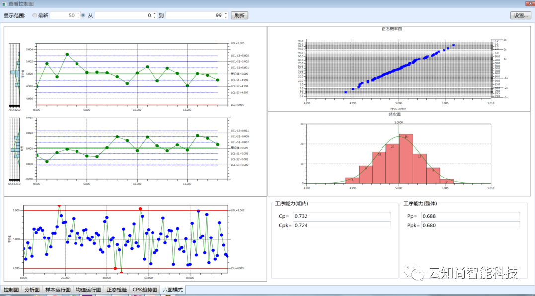 支持计算各种工序能力指数分析参数(Cp、Cpu、Cpl、Cpk、Ppk、Cpk);