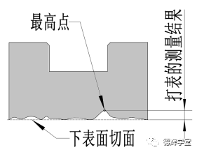 打表法的测量原理,千分表最大的摆幅反映的实际上是,被测表面上的最高点和被测表面的切面(也就是测试平台的表面)的距离。
