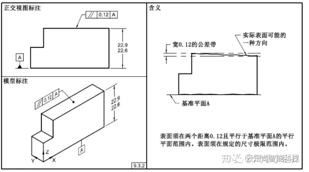 平行度是一个表面,中心线/面精确地平行于一个基准。只表示方向,不定位置。平行度可以控制一个表面,中心线、中心面对于基准平行度允许的变化量。