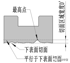 如果将下表面的切面平行移动到最高点,那么打表的结果反映的是和下表面切面平行的两平面“夹出来”的区域的宽度,我们把它叫做“切面区域”宽度D’。如下图。