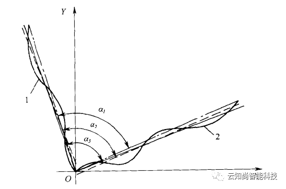 垂直度误差是2个运动方向之间的误差。他们不是X,Y或者Z位移的函数。,它们是三个纯量误差。由于坐标测量机沿三轴的运动不是一条理想的直线,而带有直线度误差。轴线位置的定义方法不同,求得的垂直度误差也不同。运动轴线与直线度运动误差有 3 种定义方法:①首尾连线法,如图中点划线所示;②最小二乘法,如图中虚线所示;③通过原点的最小二乘法,也即过原点的平均线法,如图中实线所示。根据这3种方法求得的垂直度误差a,的值不同,分别为a1,a2和a3,相应的直线度运动误差也不同,但它们所表示的测量机运动误差是相同的。通常用第2与第3种方法较多,因为它们受单点误差的影响较小,所测得的垂直度误差值比较稳定。应当说第2种方法受单点误差值影响最小,但这时原点直线度运动误差不为零,不好理解。